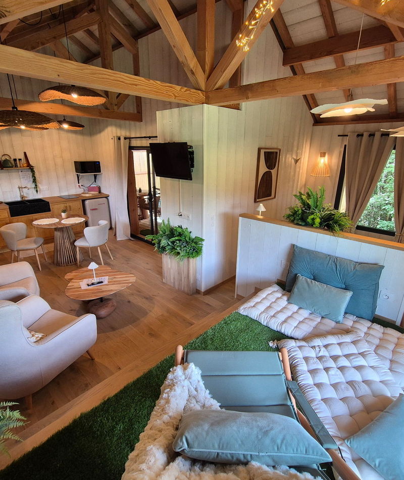 Tiki est perché entre ciel et nature, vous invitant à ralentir le temps. Laissez-vous envelopper par la tranquillité de la forêt, le murmure du vent et la chaleur réconfortante d'un sauna privé.